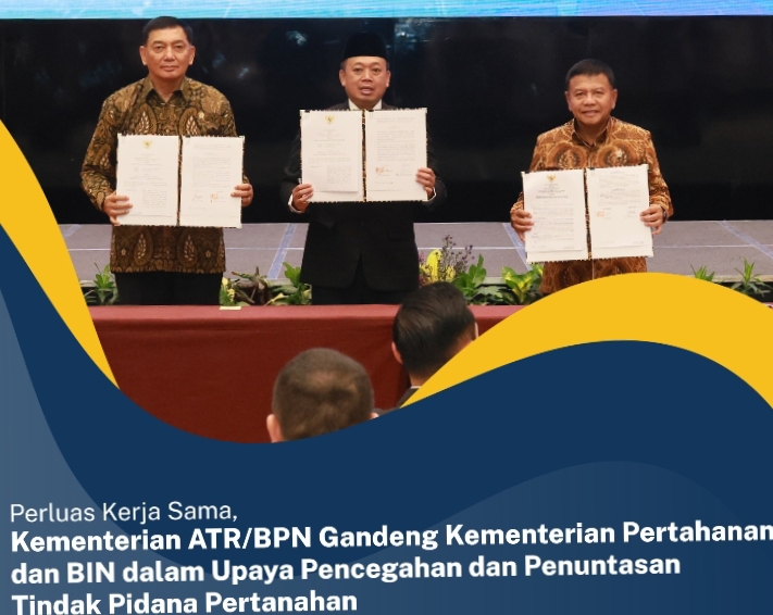 Jalinan kerja sama tersebut diresmikan dengan penandatanganan _Memorandum of Understanding_ (MoU) oleh Menteri ATR/Kepala BPN, Nusron Wahid dengan Menteri Pertahanan, Sjafrie Sjamsoeddin dan Kepala BIN, Muhammad Herindra.
