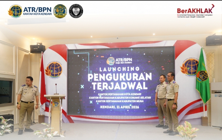 Peluncuran program Layanan Pengukuran Terjadwal ini secara simbolis dilakukan oleh Kepala Kanwil BPN Provinsi Sultra, Budi Hartanto, S.SiT., M.H., QRMP, yang dilaksanakan di Aula Kanwil BPN Sultra, Selasa (21/4/2026).
