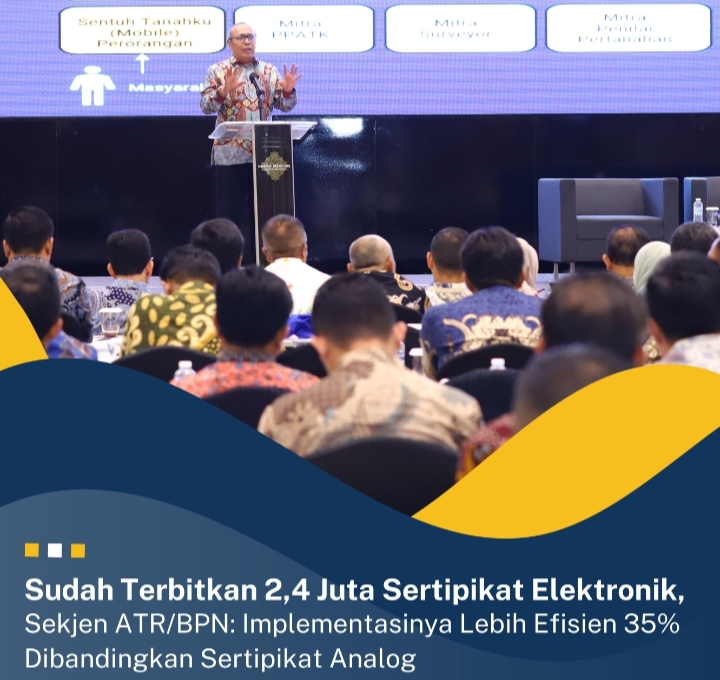 Sultraonline, JAKARTA – Sejak diluncurkan pada Desember 2023 lalu, 2,4 juta Sertipikat Elektronik sudah berhasil diterbitkan dan dapat mengefisiensi hingga lebih dari 35% waktu penerbitan sertipikat tanah.