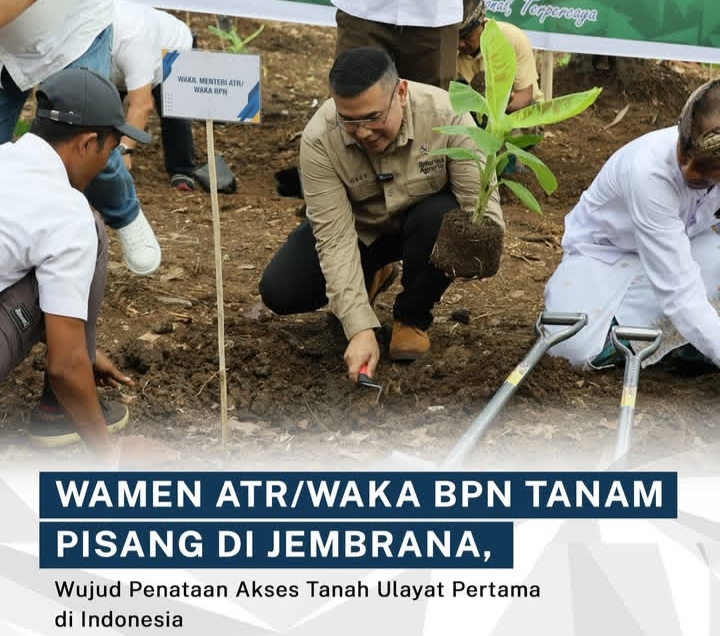 Sultraonline, JEMBRANA – Wakil Menteri Agraria dan Tata Ruang/Wakil Kepala Badan Pertanahan Nasional (Wamen ATR/Waka BPN), Ossy Dermawan, bersama masyarakat Desa Asahduren, Kabupaten Jembrana, Bali, melakukan penanaman pisang cavendish di lokasi tanah ulayat mereka pada Jumat (28/02/2025).